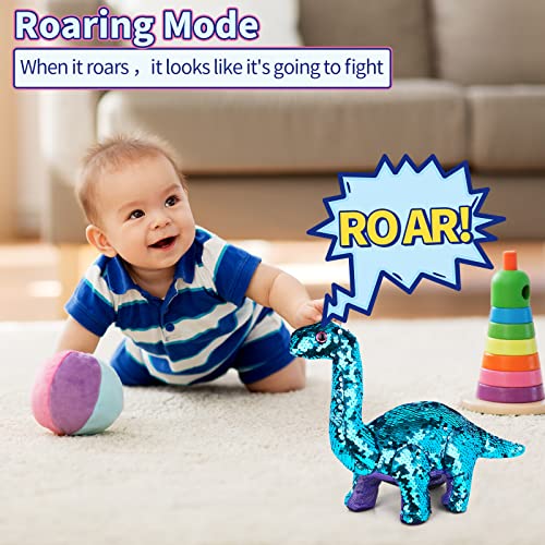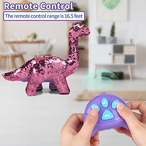 🎀[ UNIQUE COLOR SEQUINS DESIGN ] This plush stuffed electric remote control reversible sequins dinosaur toy has sequins design , which is specially made for girls that like-colored dinosaurs or dinosaurs with various colors. Caress the back of the chameleon-like dinosaur, you will see the toy switch its skin color between blue and rose-red, and it can also become a blue and rose-red interlaced color, which definitely will attract your kids’ attention and arouse their curiosity