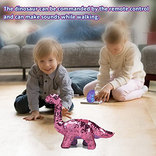 Remote Control Electric Reversible Sequins Dinosaur Toy for 3+ Years Old & Up Toddlers Girls ,RC Dino Can Repeat & Walk…